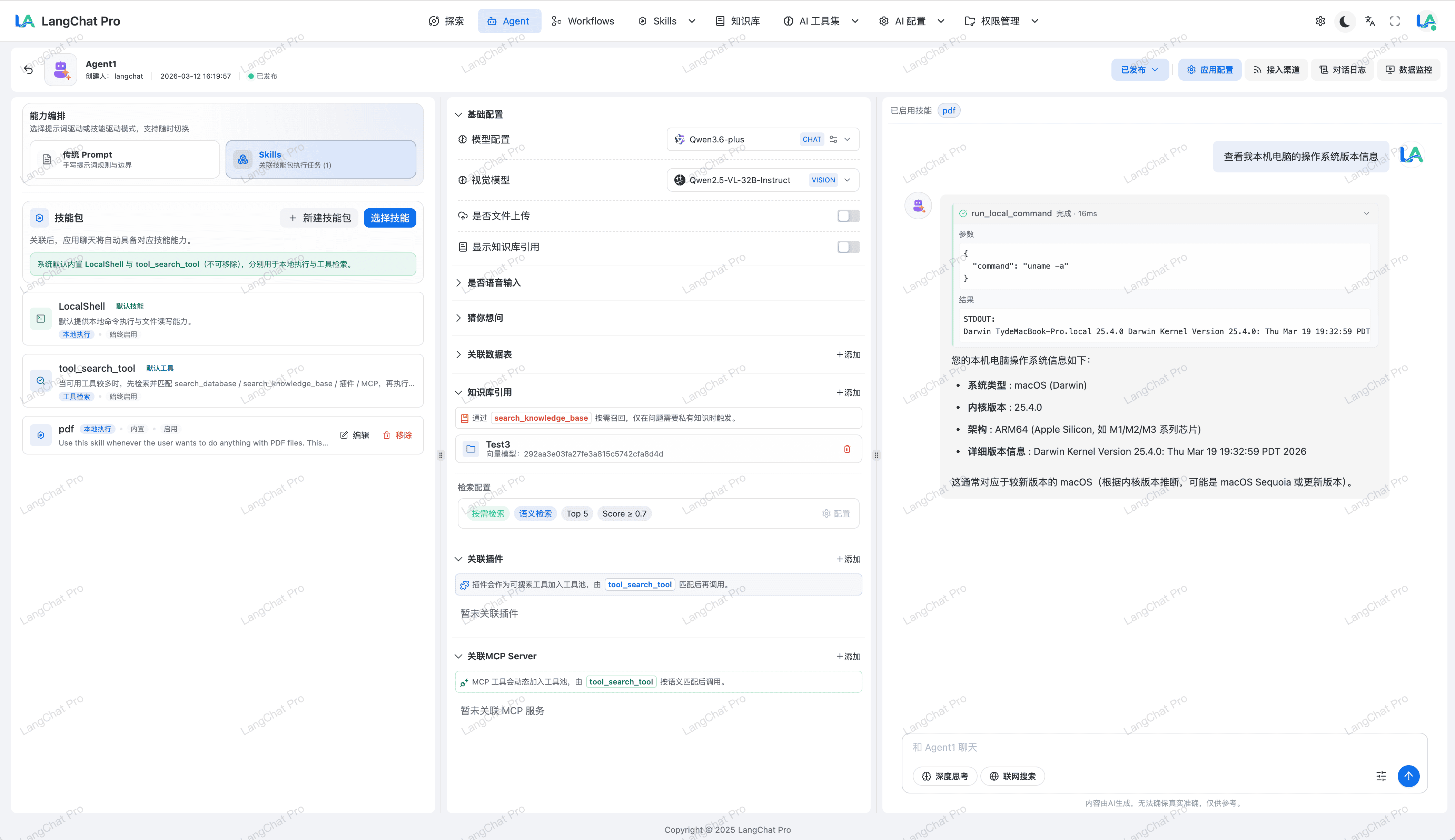 从 RAG 检索体系的底层重构,到 Workflow 循环逻辑的突破性进展。LangChat 致力于为企业提供最稳健、最灵活的 AI 基础设施。