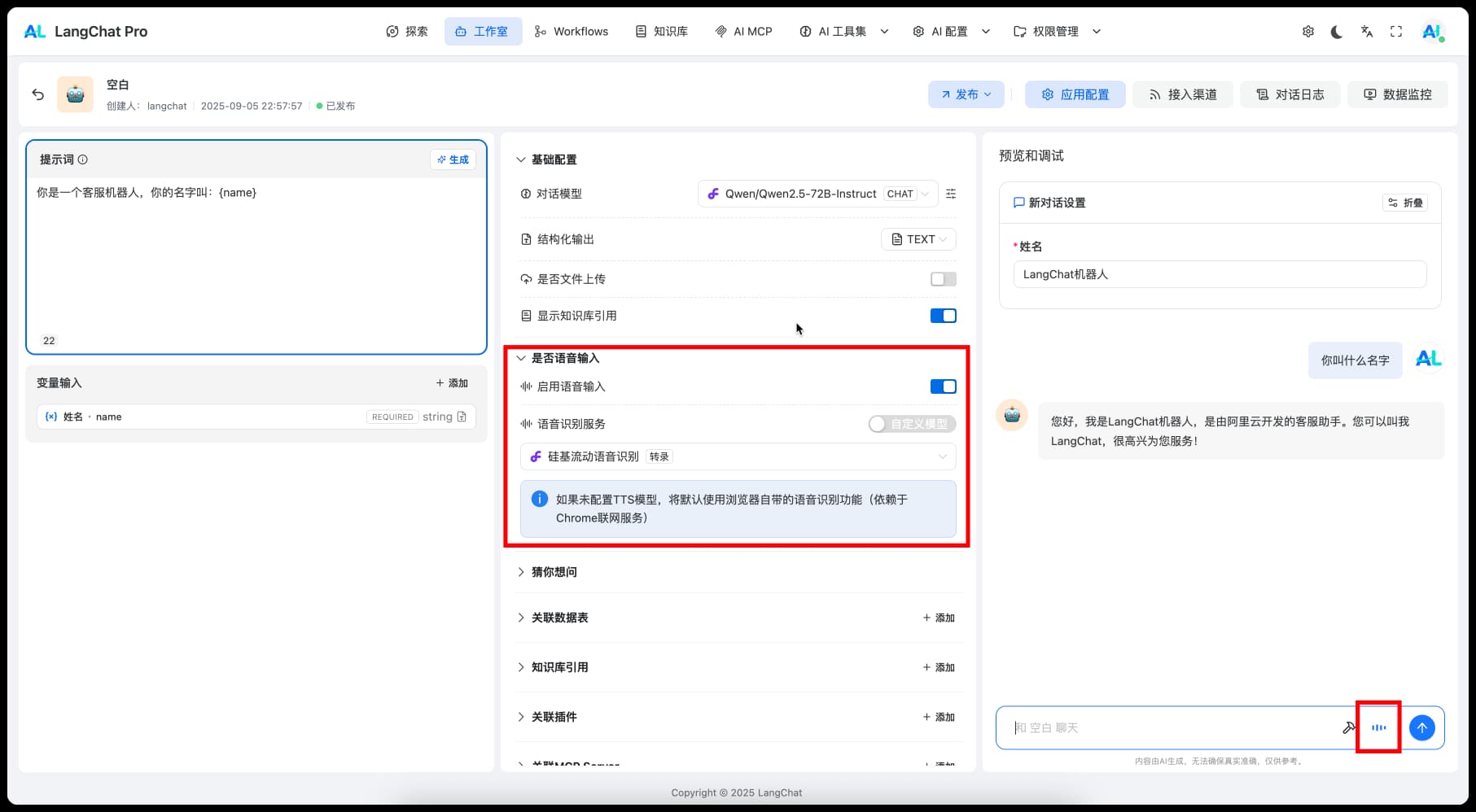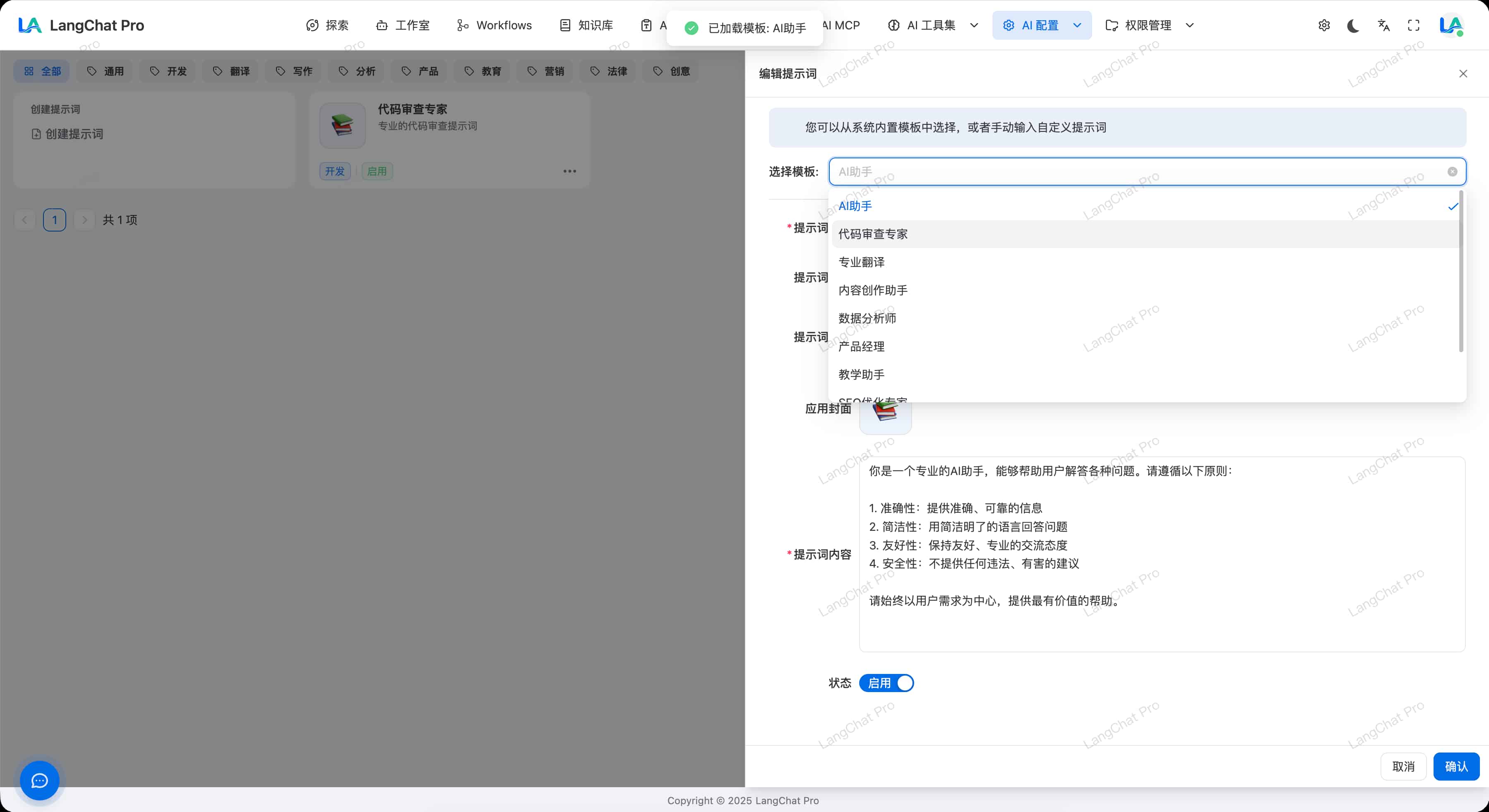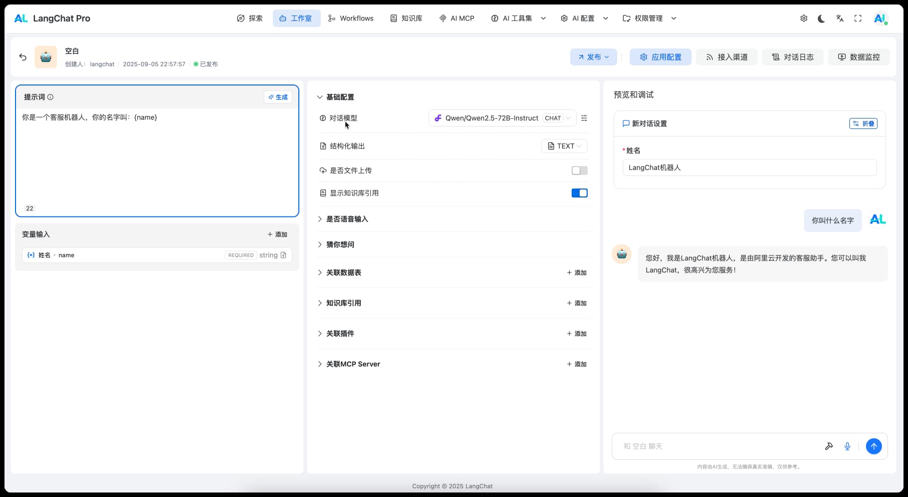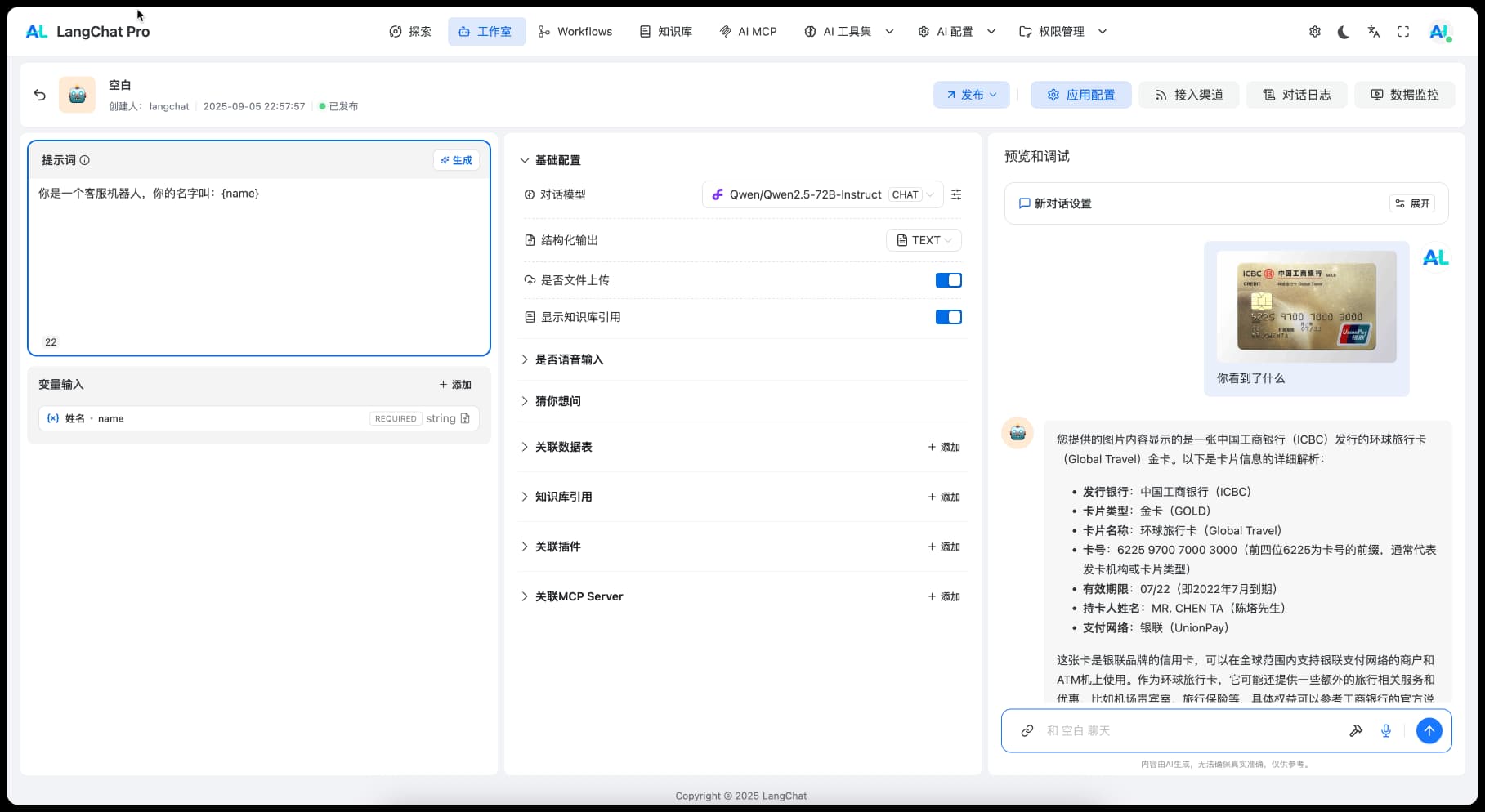 - 支持高度定制化的系统提示词 (Prompt)、温度参数 (Temperature) 及对话长下文记忆管理机制。