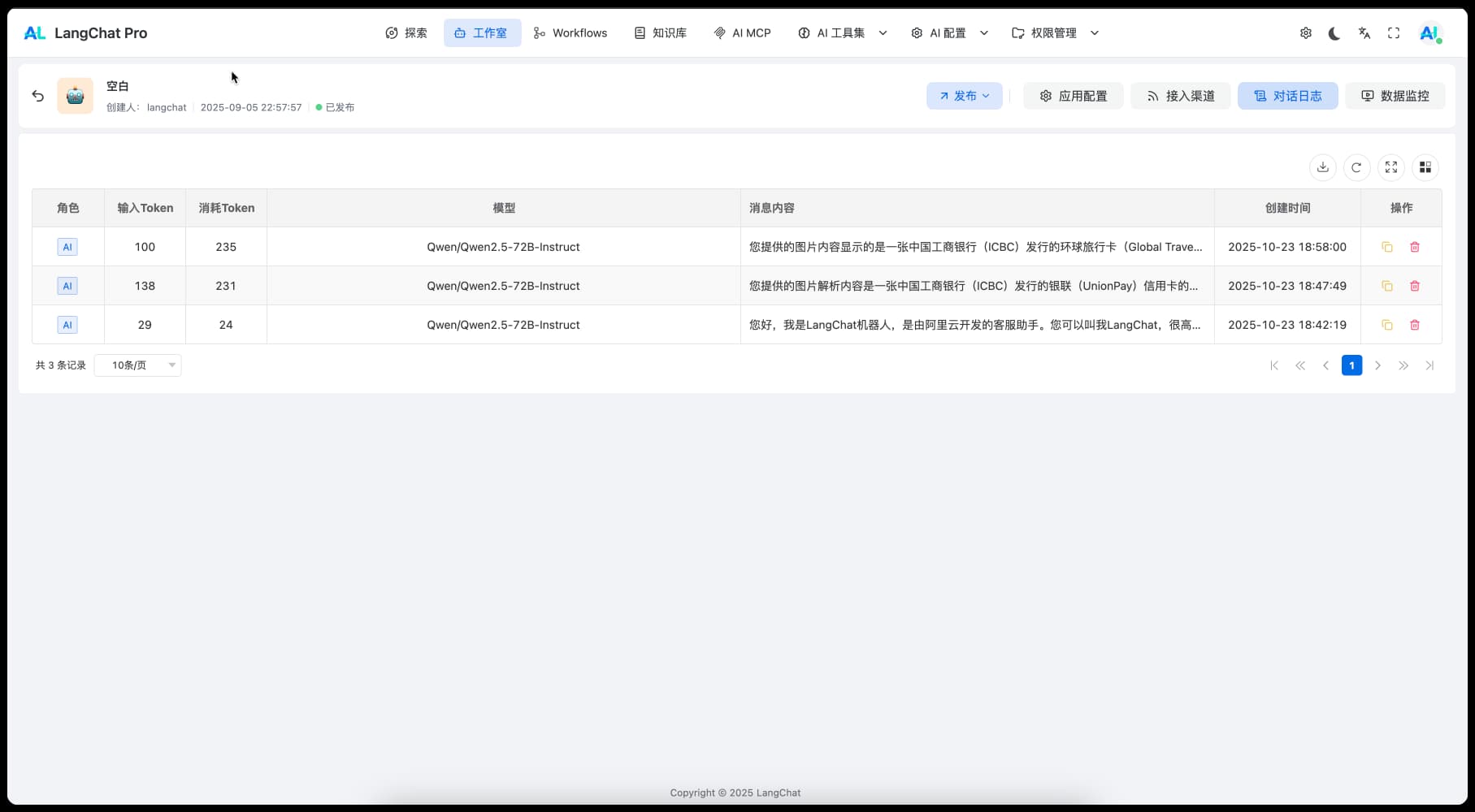 | Agent 智能体开发 | Agent 应用管理(基础对话/智能助手) | ✅ | ✅ |