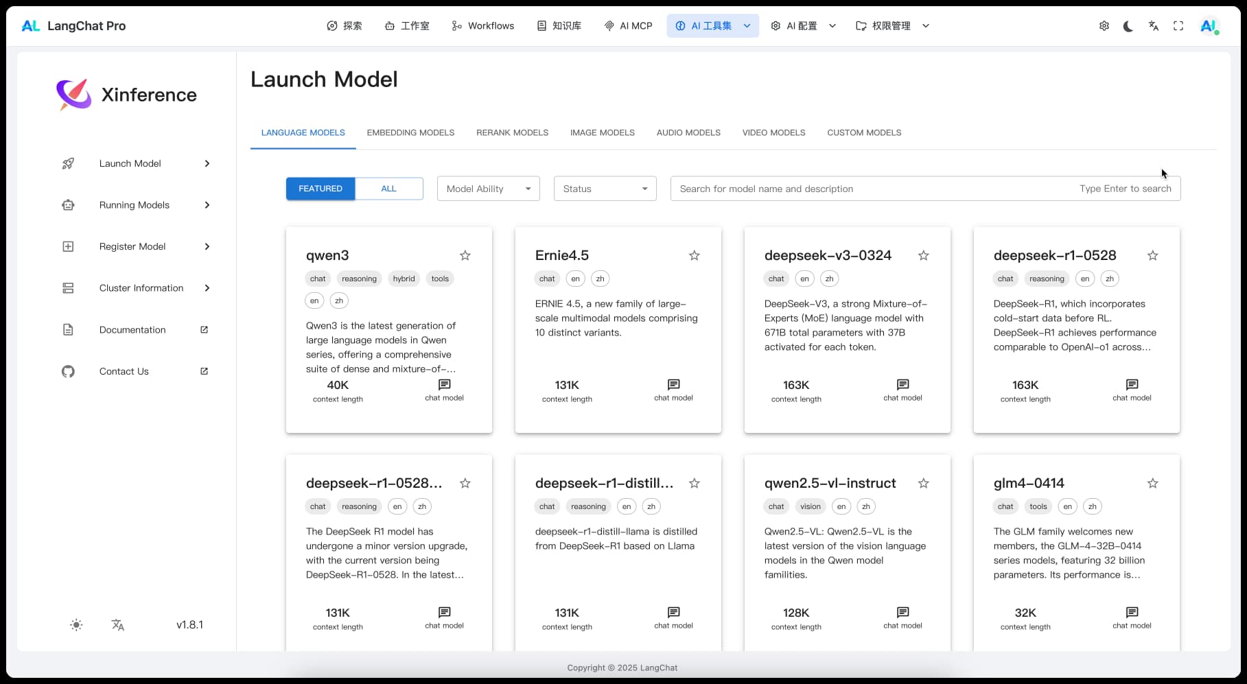 - 私有化开源模型推理:适配 Ollama、vLLM、Xinference 及 GpuStack 等高性能本地推理框架。