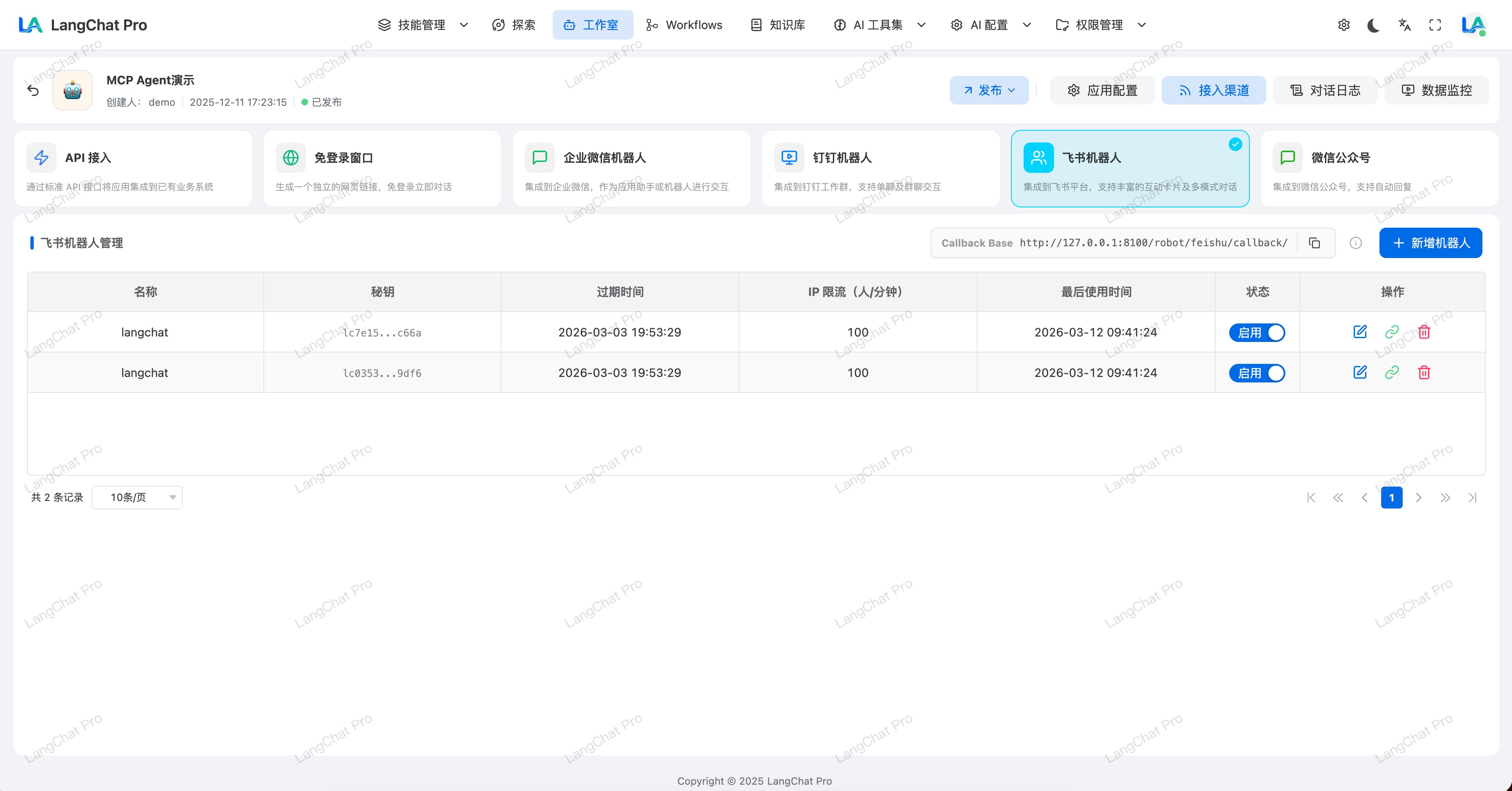 LangChat 是基于企业级 Java 生态构建的现代化 AIGC(AI Generated Content)应用开发平台,致力于为企业提供一站式的大模型私有化落地及智能应用集成解决方案。