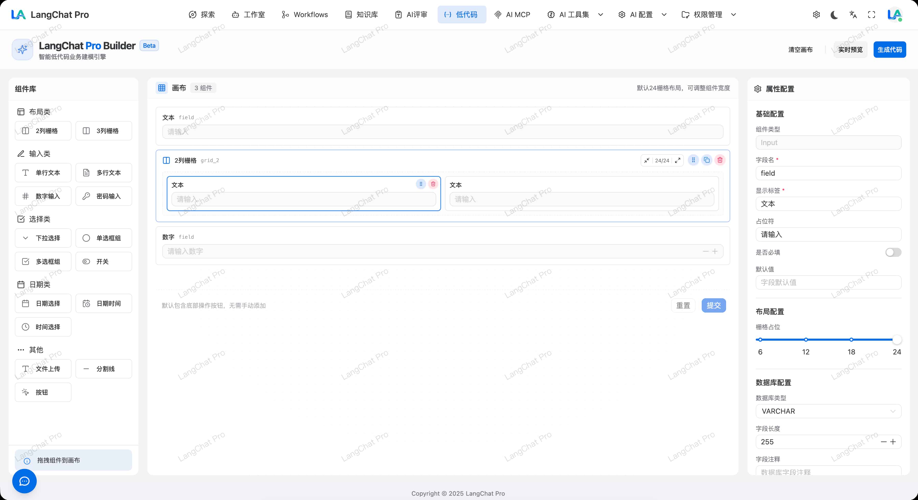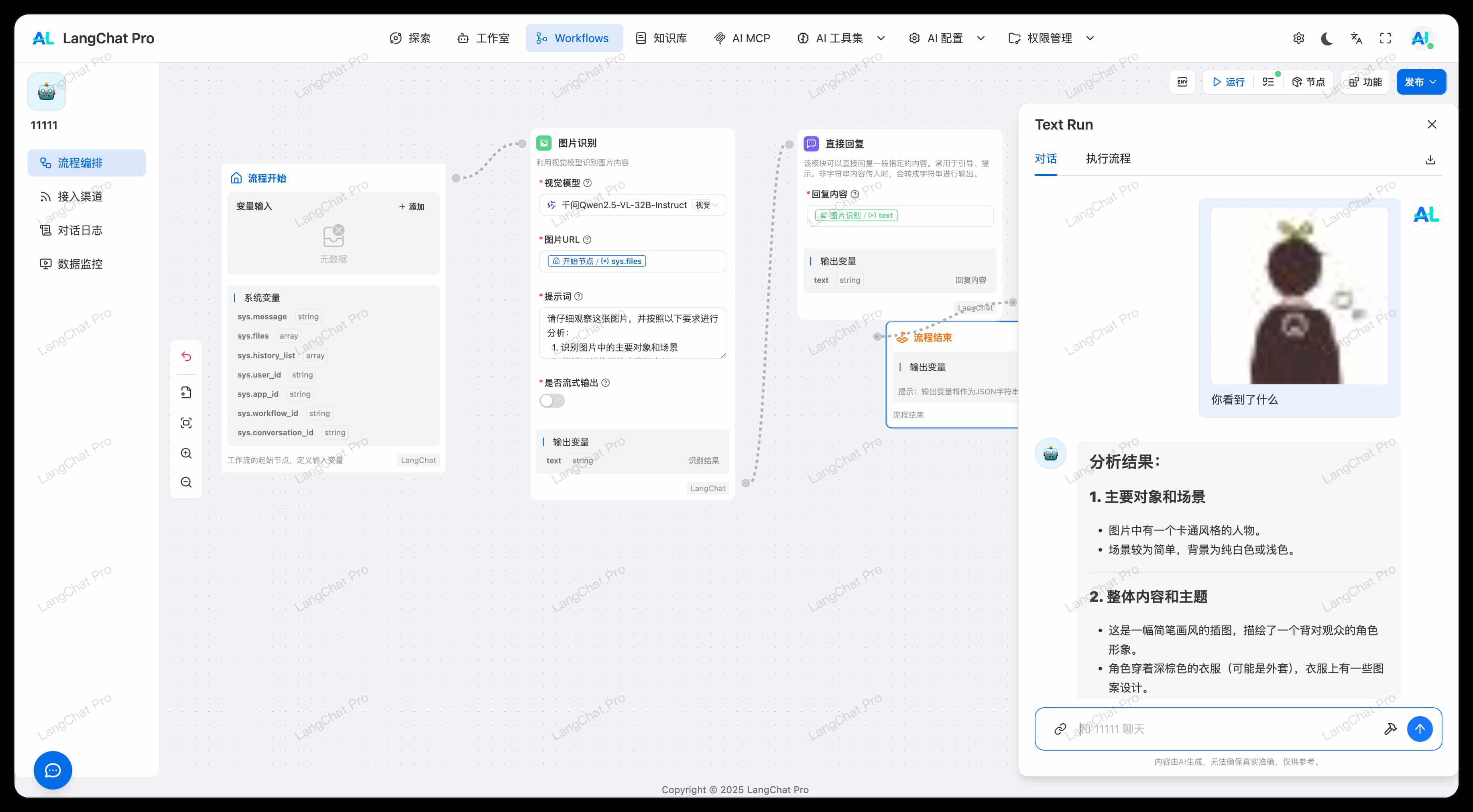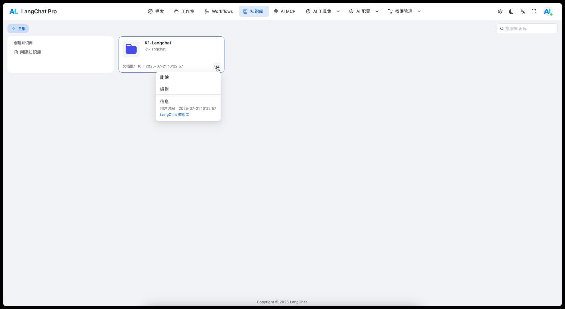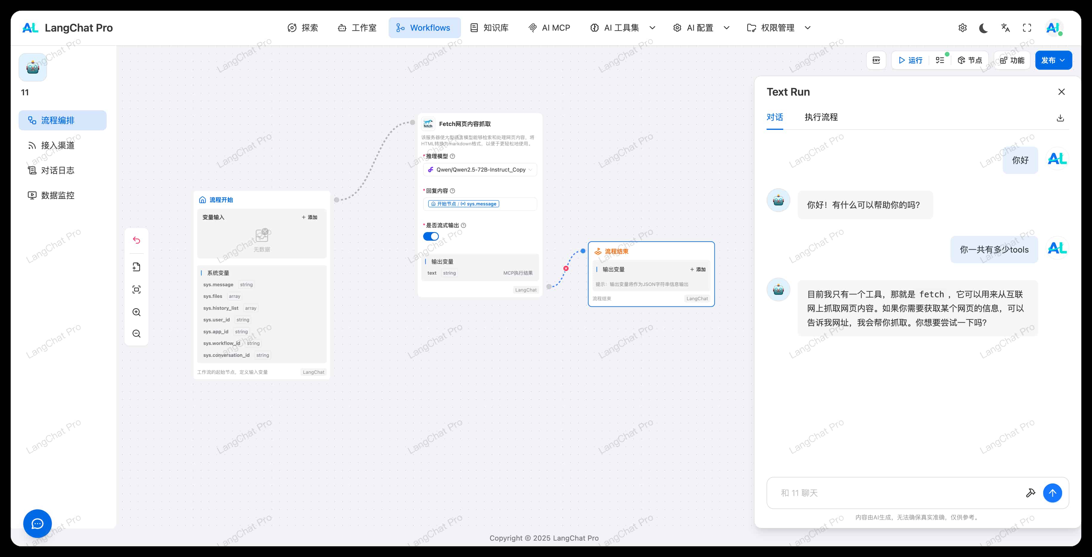 平台采用高度解耦的模块化与微服务友好的分层架构设计。企业能够依托 LangChat 快速构建高性能的 RAG 智能知识库、无缝挂载的多模态 AI 助理、以及低代码驱动的智能业务工作流,大幅降低大模型应用开发门槛,全面加速企业业务层面的数字化与智能化转型。