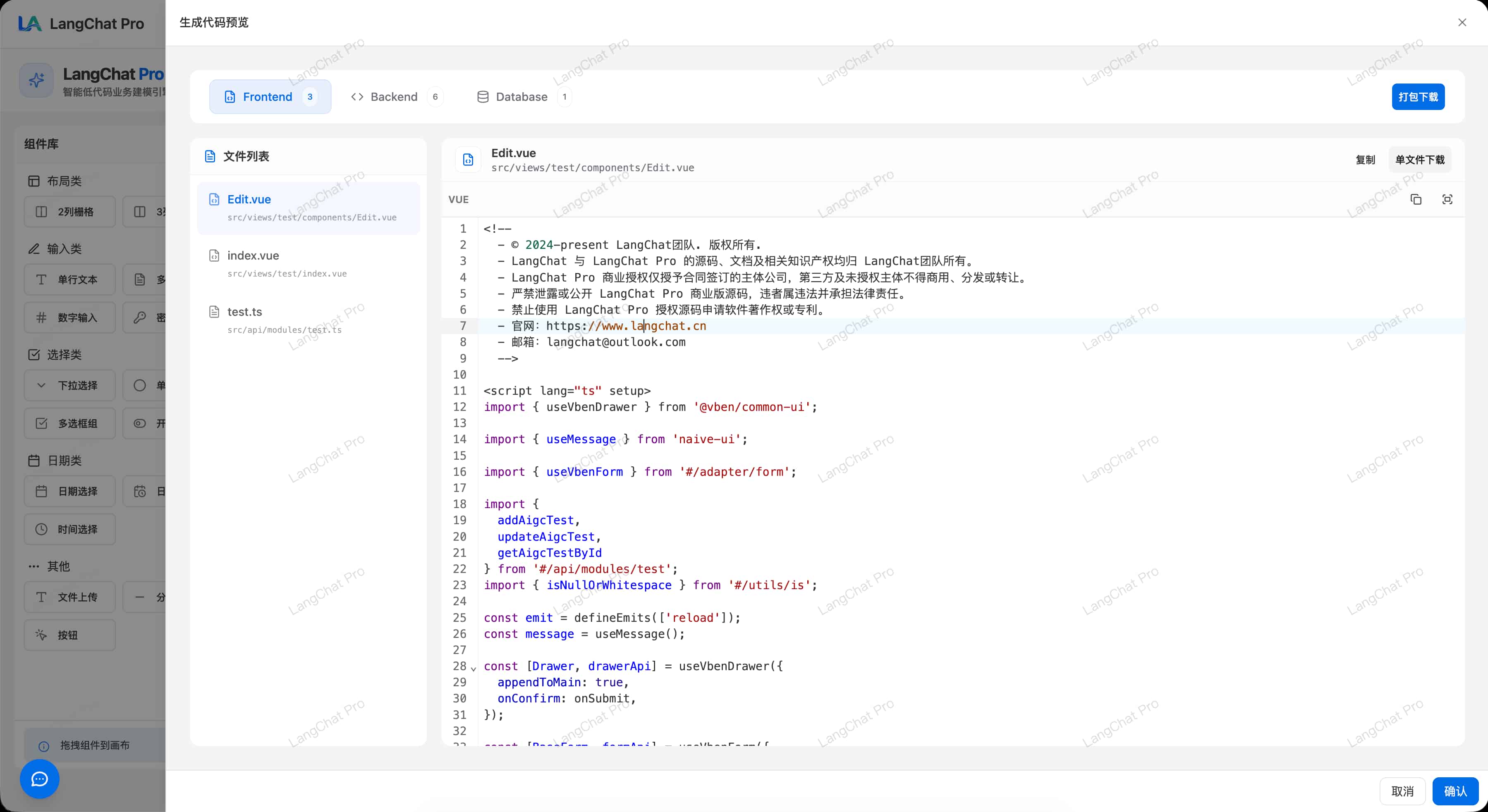 - 敏捷应用层低代码搭建系统机制:完全剥离反复后端编码,提供多维度前端控制表与各类布局样式栏自由抽拽合成技术能力。并附带即时云编译并提供原始完整执行逻辑源代码和打包文件输出支持。