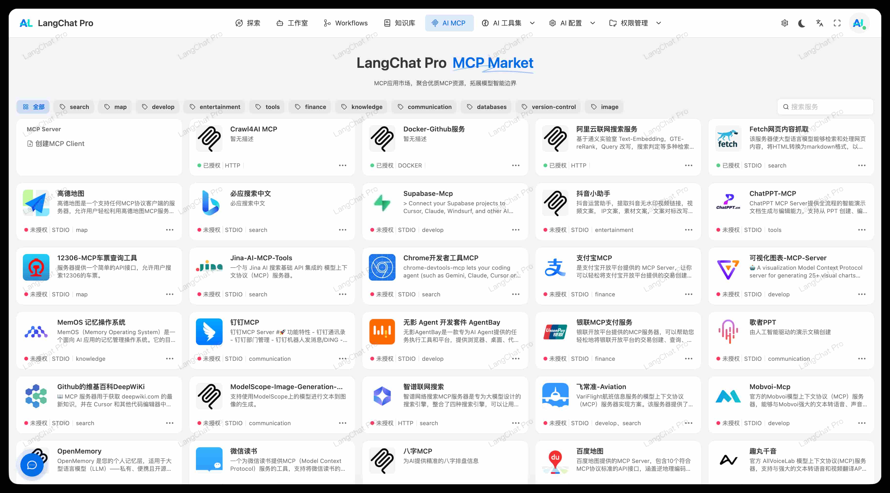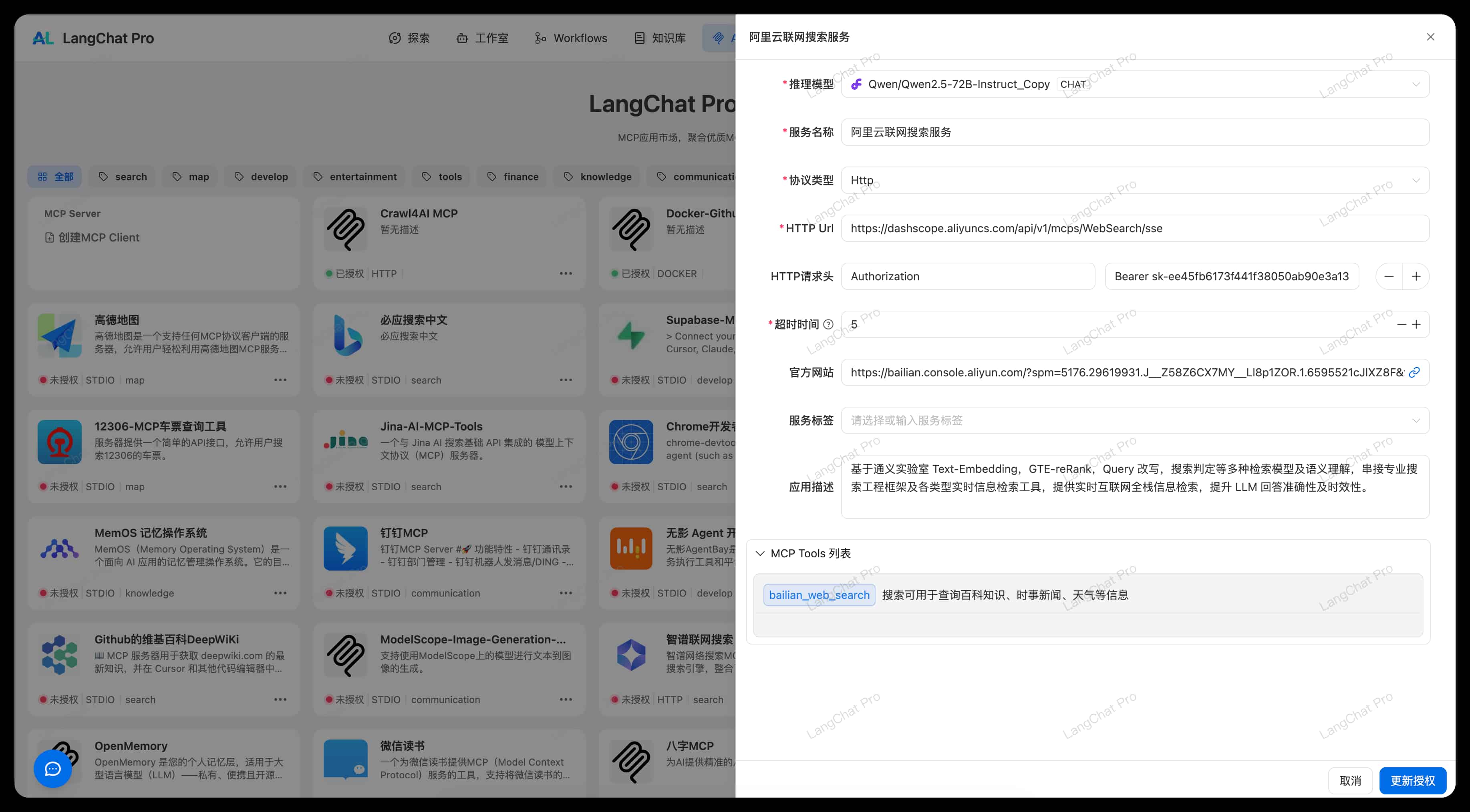 - 标准化 MCP 200+ 集群服务:完全兼容 HTTP SSE / Stdio 乃至 Docker 内联等各大环境通讯方案。提供极速接入的 JSON Schema 对接面板以及开箱即用的 Java SDK,工作流中能够动态解析渲染 MCP 携带的 Tools 协议栈清单。