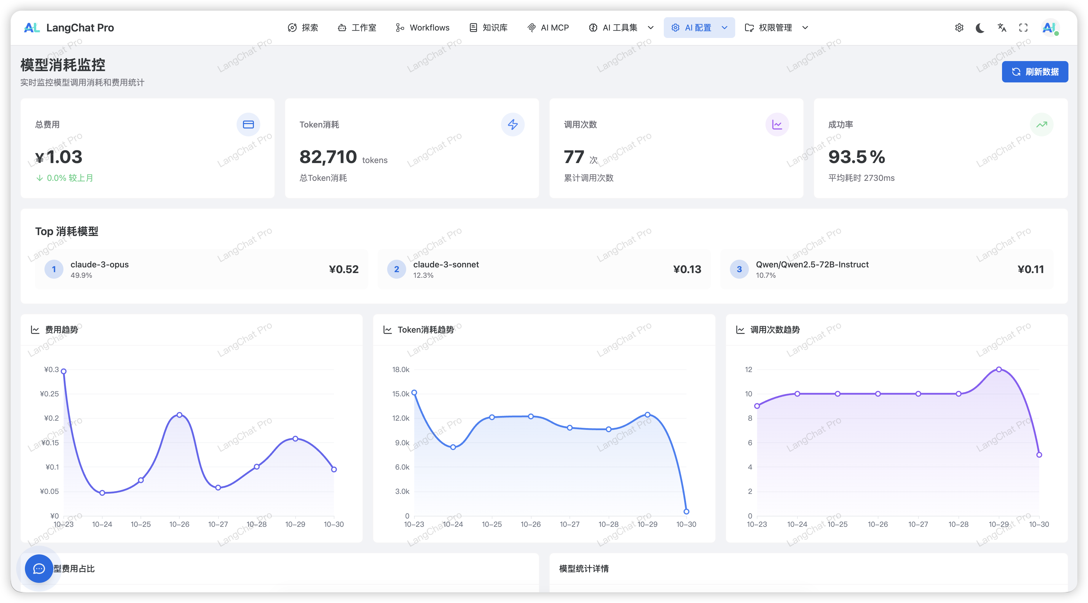 - 自适应费用换算与视图数据报表:兼顾私网自部署框架下依据次数定额,或类似 Claude 与 OpenAI 级别的精确到分毫的 Tokens 定价折算统计报表模型;动态导出基于多维度大图层(部门/人员/平台/月周均比分析比)透视看板。
